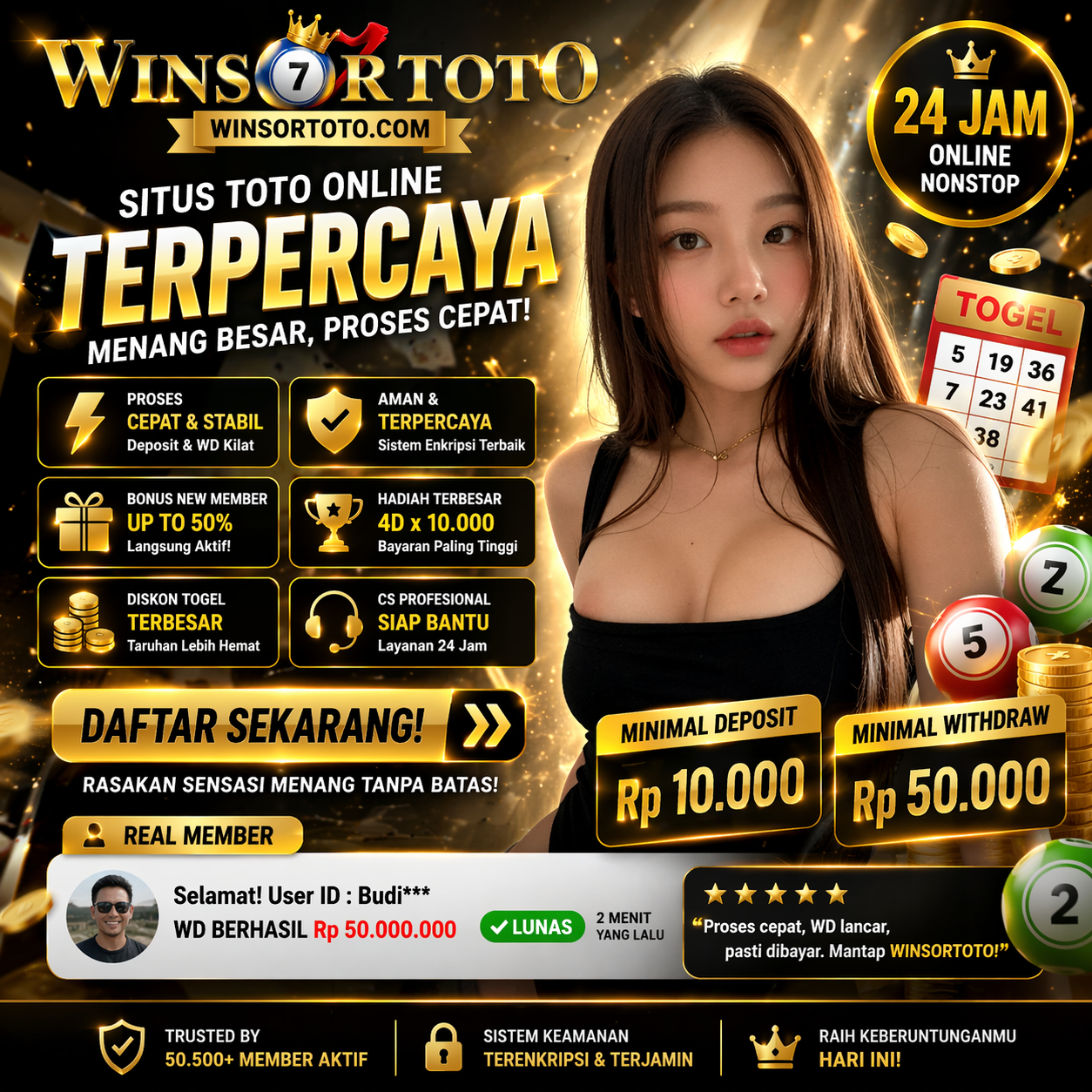 Keunggulan lain dari WINSORTOTO terletak pada sistem keamanan yang terjaga serta layanan profesional yang aktif 24 jam. Dengan reputasi yang terus berkembang dan kepercayaan dari banyak pemain, platform ini menjadi solusi bagi Anda yang mencari login situs toto togel terpercaya dengan akses cepat dan stabil. Jika Anda menginginkan pengalaman bermain yang lebih maksimal dengan dukungan slot gacor hari ini serta peluang maxwin yang kompetitif, maka WINSORTOTO adalah pilihan yang tepat untuk digunakan saat ini.